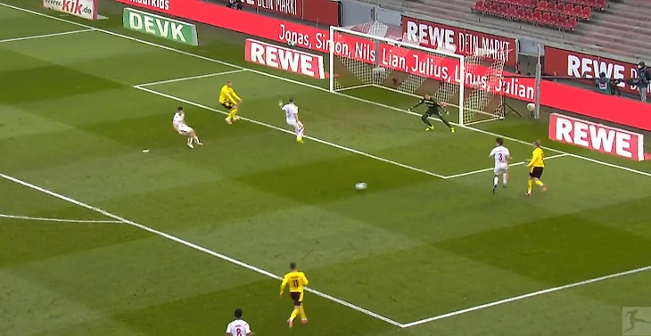 Уже на третьей минуте норвежец принял заброс Джана, развернул защитника «Кельна» и отправил мяч между ног вратарю.