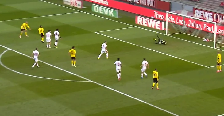 «Боруссия» создавала моменты, но забивал «Кельн»: в первом тайме Ондрей Дуда реализовал пенальти за игру рукой Джуда Беллингема, во втором защита «Дортмунда» ненадолго заснула и подарила гол Исмаилю Якобсу.