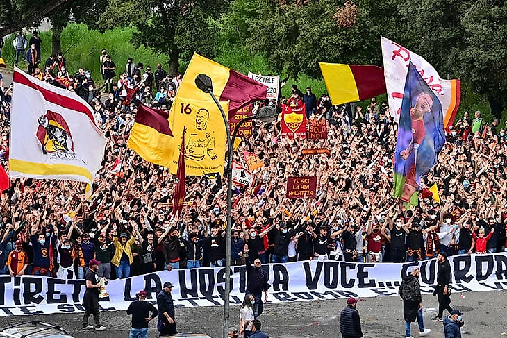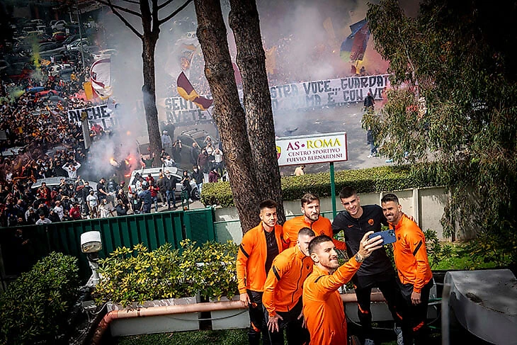 В среду в римском районе Тригория было жарко: «Рома» выехала в Манчестер на полуфинал Лиги Европы, а болельщики устроили яркие проводы.
