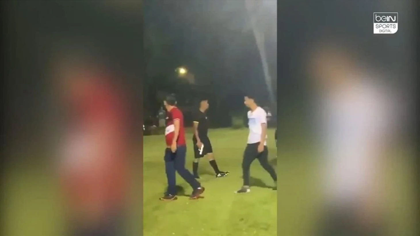 На ролике видно как фанаты вышли на поле, а арбитр спокойно ходит с оружием по центральному кругу. По сообщениям местных СМИ, судья получил пистолет от одного из родственников – тот боялся, что он нарвется на жесткие претензии от болельщиков.
