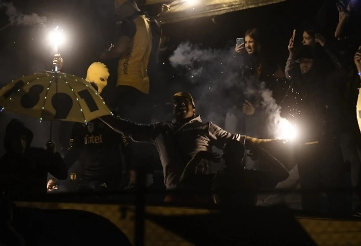 В матче «Пеньяроля» и «Рентистас» прямо перед перерывом на стадионе выключился свет – и поле, и трибуны погрузились в полную темноту. Болельщики воспользовались моментом и устроили на трибунах настоящее световое шоу: большинство зажгло экраны смартфонов, кто-то достал светящиеся зонтики, самые ушлые фанаты подожгли файеры. Получилось эффектно!