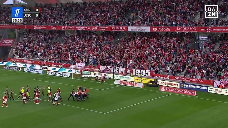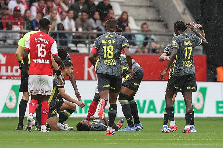 Первый тур чемпионата Франции – первый жуткий момент. Матч «Реймса» и «Лилля» фактически приостановили после того, как на 11-й минуте столкнулись полузащитники Амаду Коне и Эйнджел Гомес.