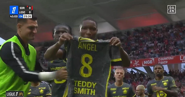 Футболистов отправили разминаться перед возобновлением матча – судья добавил к первому тайму 34 минуты. На тридцатой добавленной капитан «Лилля» Бафоде Диаките забил после углового и показал в камеру футболку Эйнджела Гомеса.