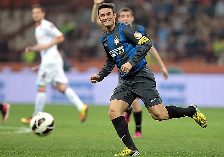 В непостоянном «Интере» уже почти 20 лет не меняется только одно – Хавьер Дзанетти в основном составе. Аргентинцу скоро 40, но забеги через все поле ему удаются не хуже, чем в молодости. (Честь эпохи. Пирло и еще 10 самых уважаемых игроков современного футбола) Фото: Fotobank/Getty Images/Giuseppe Bellini