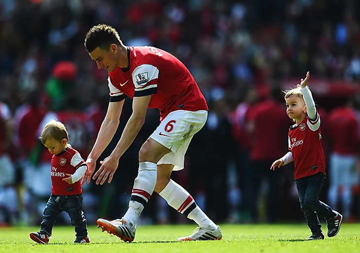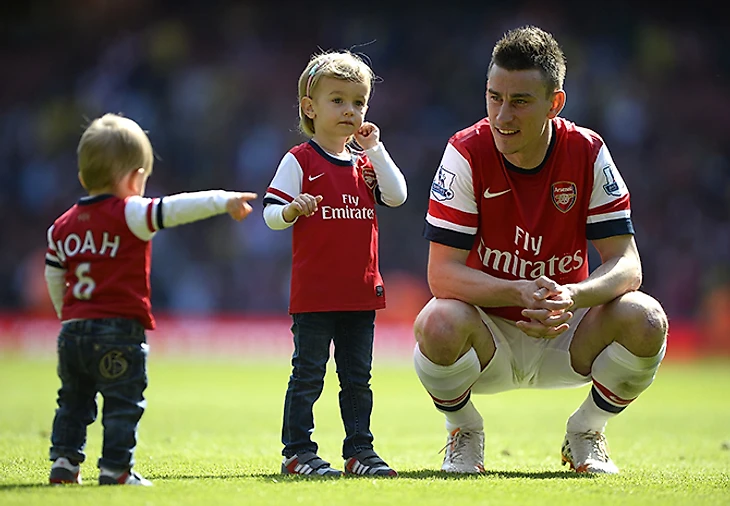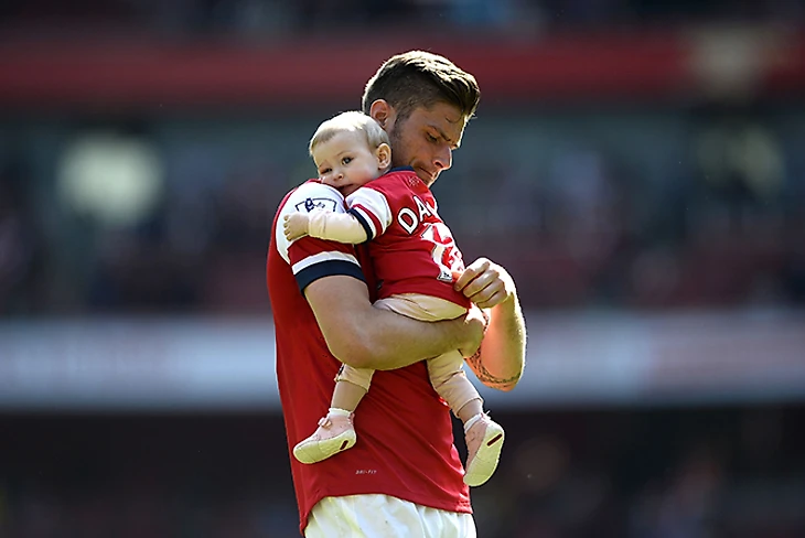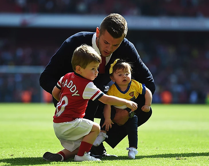 Джек Уилшер из-за травмы матч пропускал и пришел на него с детьми.