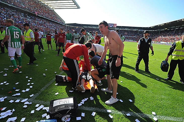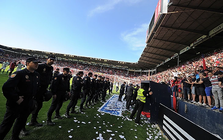 Матч 38-го тура чемпионата Испании «Осасуна» – «Бетис» (2:1) был прерван на 35 минут из-за происшествия на трибуне за воротами.