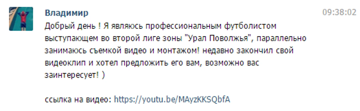 В соцредакцию Sports.ru пришло письмо от защитника из второй лиги Владимира Ярославцева. Не можем не поделиться. Где вы еще встречали футболистов-клипмейкеров?