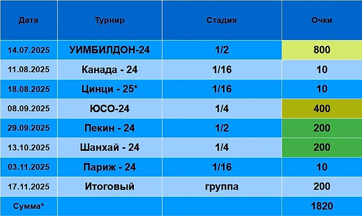 Например, в 2021, Даниил после Уимбилдона набрал 5100 очков.