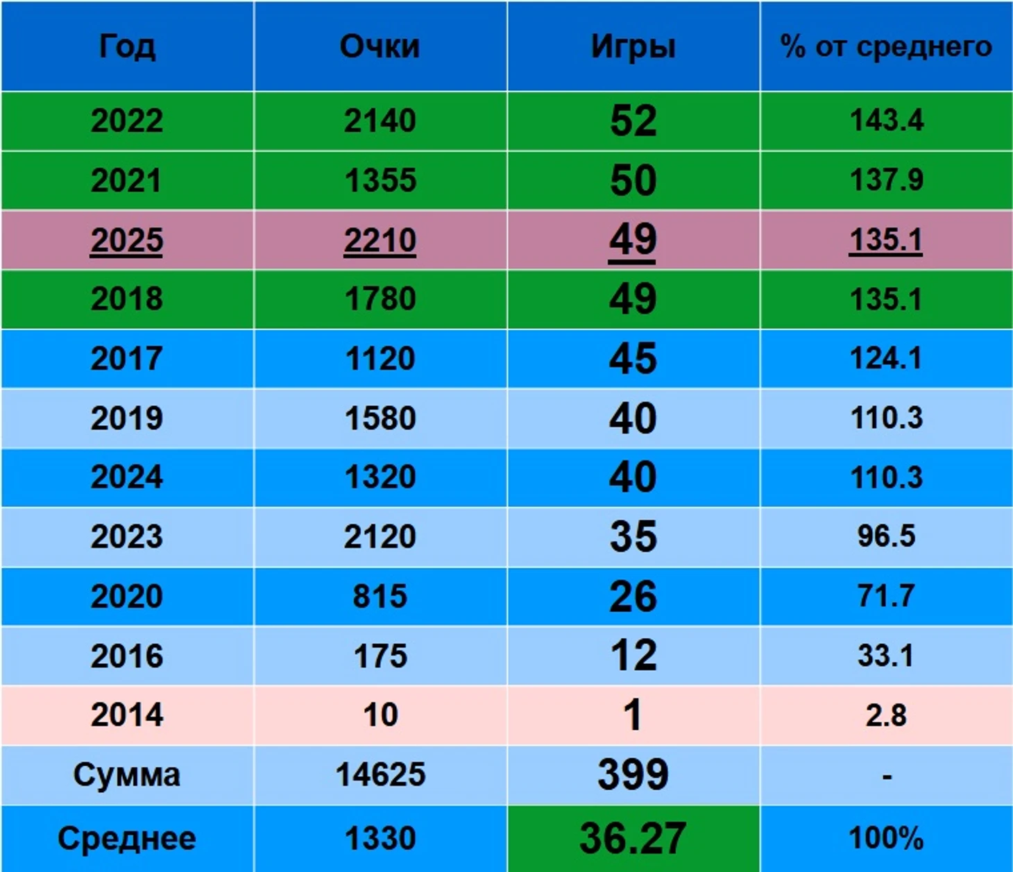 2210 очков в 2025, 1320 очков в 2024. 167.4% очков от 2024-го. И сильно лучше…