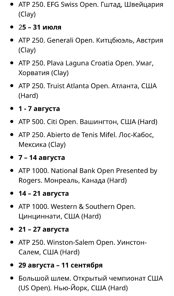 Серия турниров в Северной Америке (ATP 500 Вашингтон- ATP 1000 Торонто- ATP 1000 Цинциннати-Us Open).
