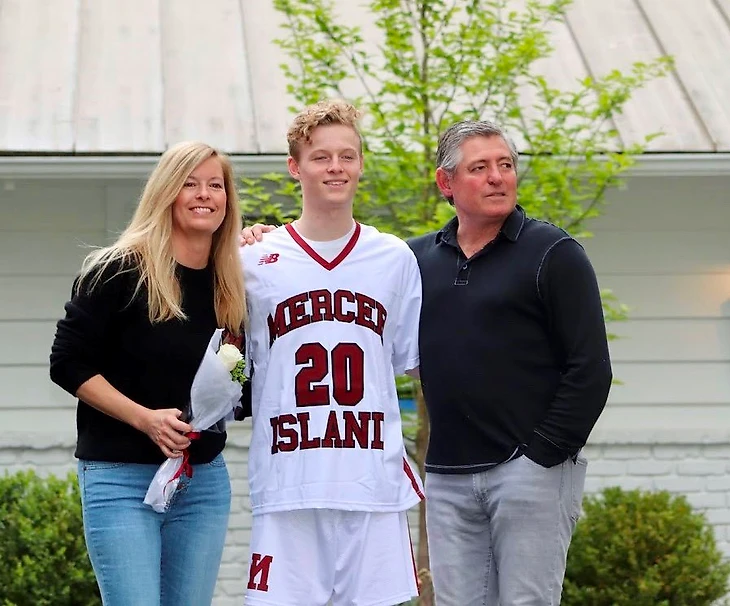 Келли Эвернден с женой Меган и сыном Остином (он занимается лакроссом) в 2020 году