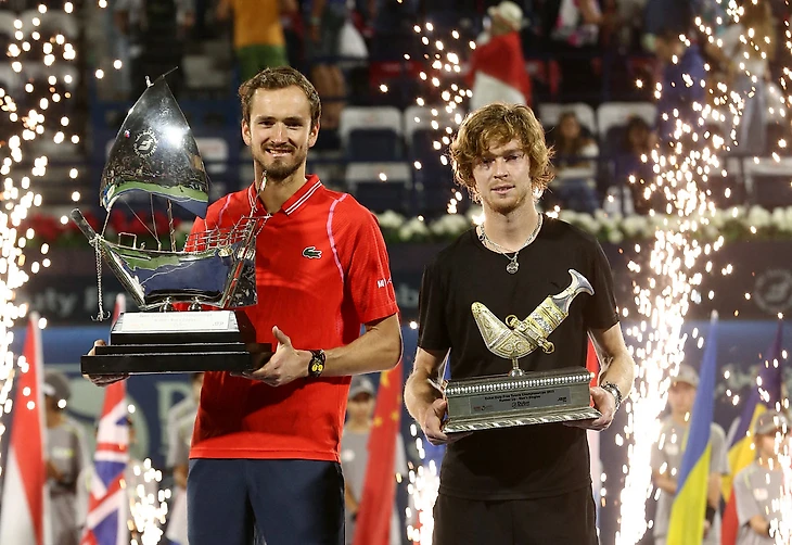 В 2024 году в теннисном туре тоже достаточно звезд из России. Главные из них, парни с самыми русскими фамилиями, Даниил Медведев и Андрей Рублев, уже несколько лет входят в топ десять рейтинга, регулярно доходят до высоких стадий главных турниров, выигрывают титулы. Даня и вовсе успел побыть первой ракеткой мира и установил рекорд по продолжительности нахождения на первой строчке рейтинга среди российских теннисистов в мужском туре — 16 недель.