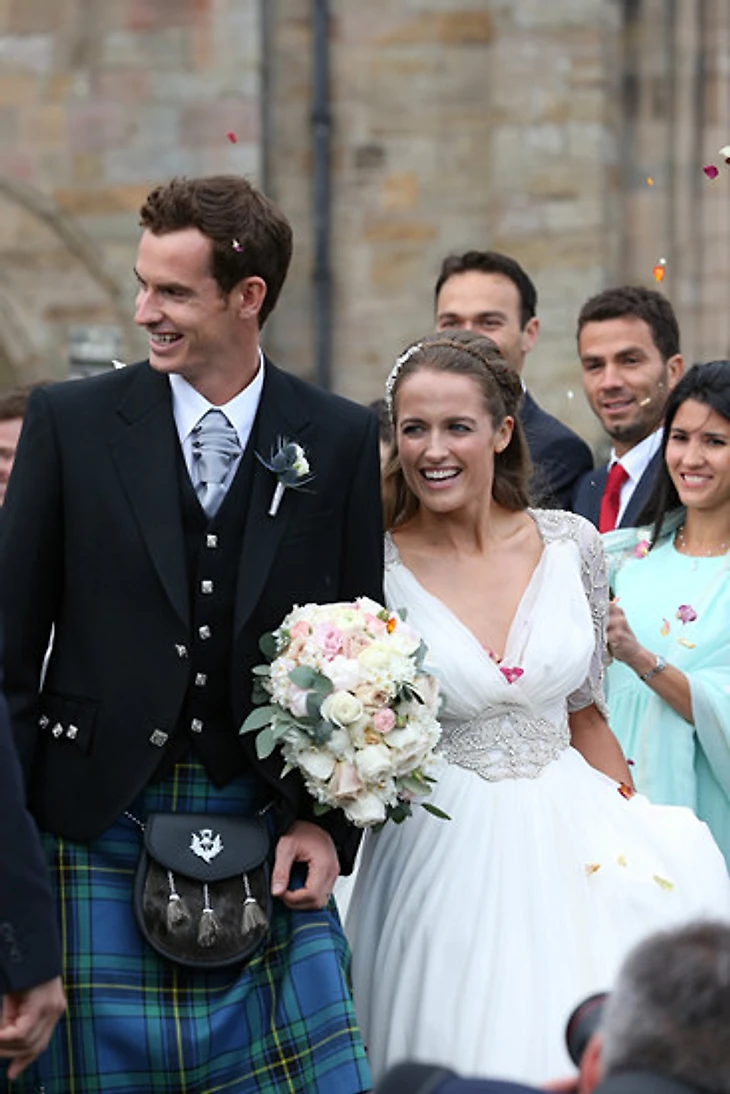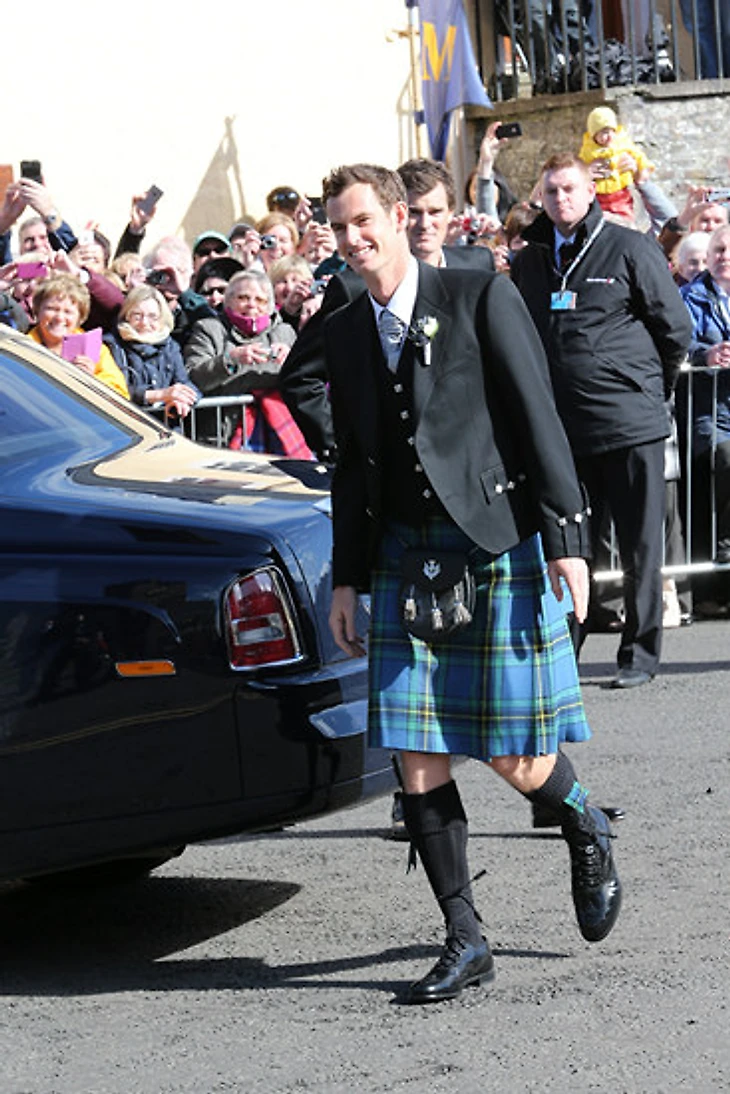 Маррей, одетый в шотландский килт, приехал на церемонию на «Роллс-Ройсе» в компании своих шаферов: брата Джейми и вице-президента Федерации тенниса Великобритании Росса Хатчинса.