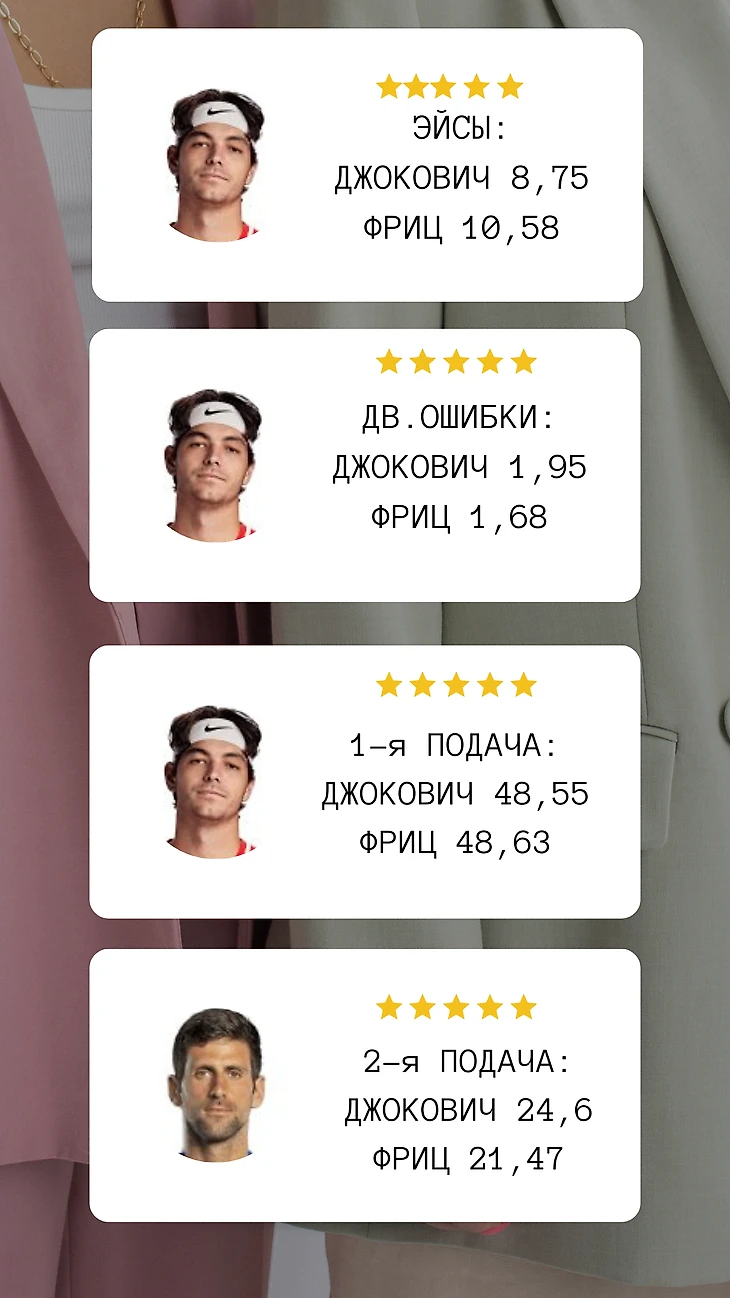 Тейлор Фриц: 5-1 (83%), 234-123 (65%).