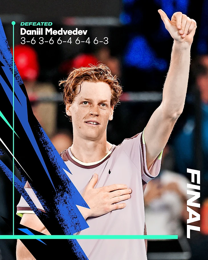 Янник Синнер - первый в истории итальянец с 1976г., которому удалось завоевать «Шлем» в одиночном разряде. Также он повторил рекорд Новака Джоковича как молодой игрок (21 год), который выиграл АО.