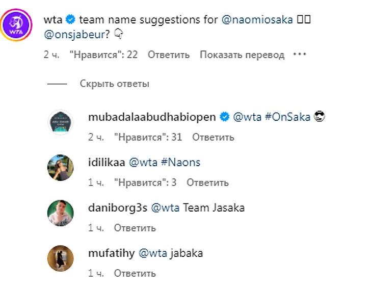 WTA анонсировали участие Наоми Осаки и Онс Жабер в парном разряде на турнире в Абу-Даби, который состоится на следующей неделе. Они предложили фанатам придумать название для их пары. Как бы ты назвал?