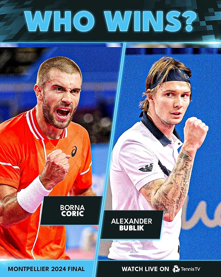 В Монпелье финалистами стали андердоги полуфинальных матчей. Александр Бублик выиграл Феликса Оже-Альяссима со счётом 2-1 (4:6, 6:4, 6:4), Борна Чорич вышел в финал на отказе Хольгера Руне во втором сете (до победы хорвата оставалось два гейма).