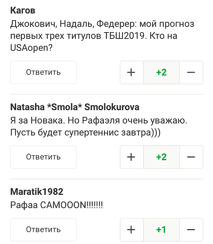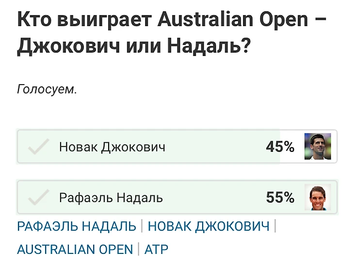 Мы спросили у пользователей, кто выиграет в мужском финале турнира. 55% проголосовали за Надаля.