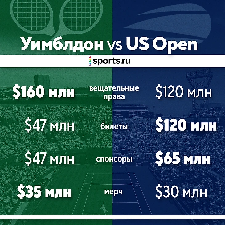 Почему «Уимблдон» зарабатывает настолько меньше US Open?
