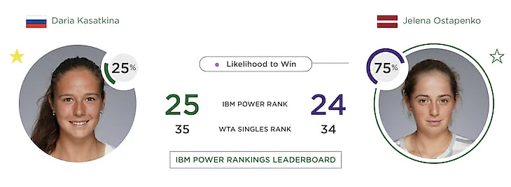 Предматчевый прогноз составляется «Уотсоном» на основе Power Ranking и истории встреч игроков. В целом система работает последовательно и закономерно, хотя и неожиданные прогнозы тоже бывают. Например, Дарью Касаткину и Алену Остапенко разделяет всего одна строчка в рейтинге и одно место в Power Ranking, однако «Уотсон» дал вероятность в 75% на победу Алены.