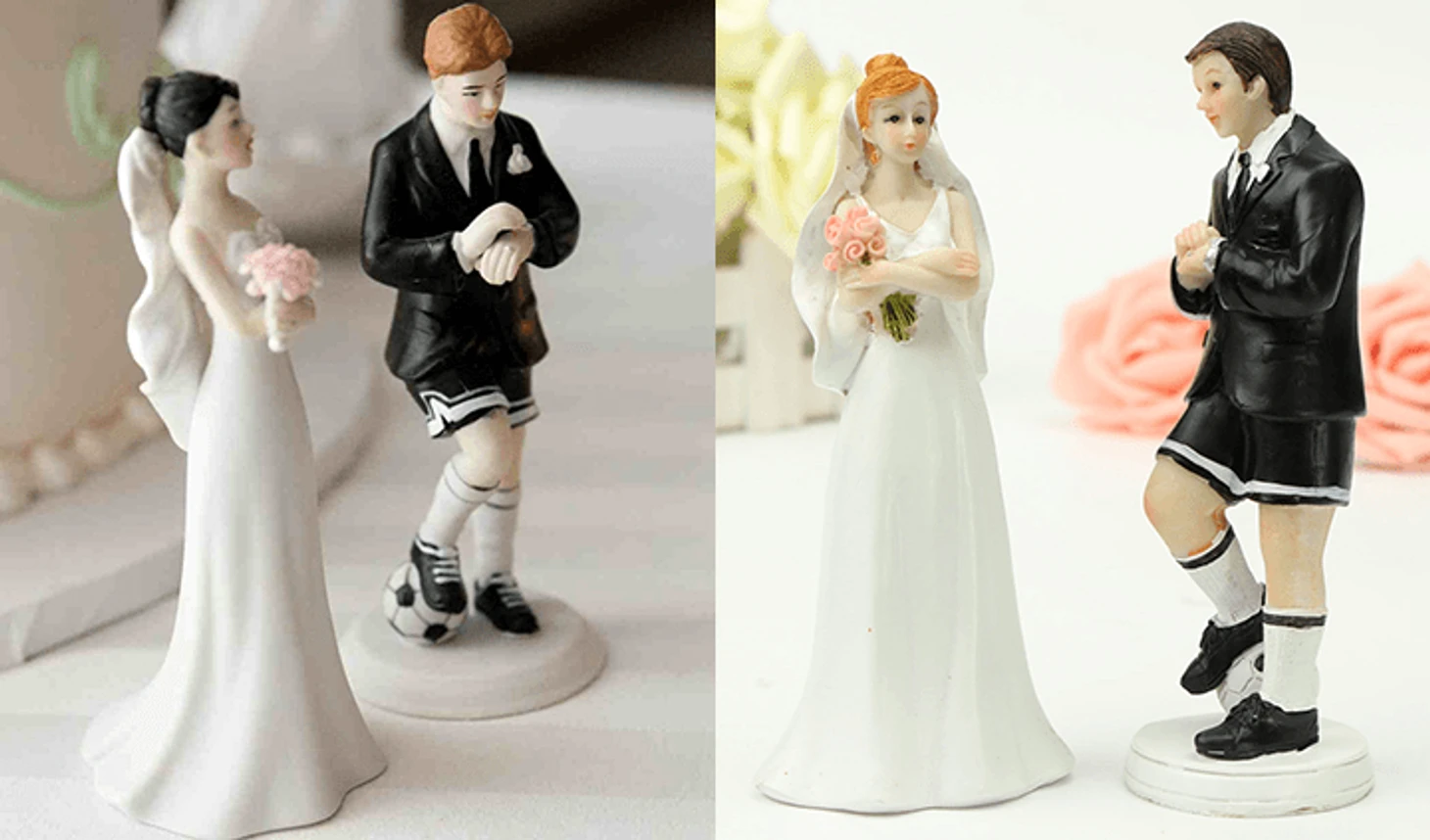 Свадебное украшение для настоящих спортсменов, футбольных фанатов и просто людей с хорошим чувством юмора. При желании можно заказать фигурки с разным цветом волос, кожи или костюма.