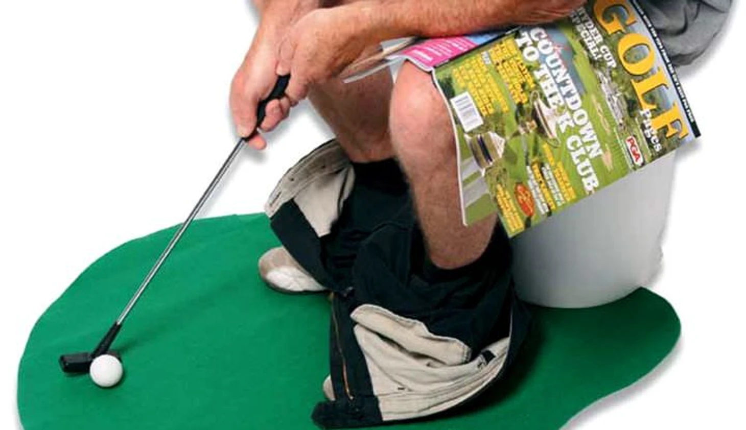 Каламбур «время, проведенное в туалете, измеряется количеством прочитанных страниц», бородат, но, тем не менее, правдив. Авторы данной необычной разновидности гольфа решили, что книги – это старомодно и наш досуг в ватерклозете следует немного разнообразить. Так и появился этот чудо-набор, в комплект которого входит мат, 2 шарика, флажки и клюшка.