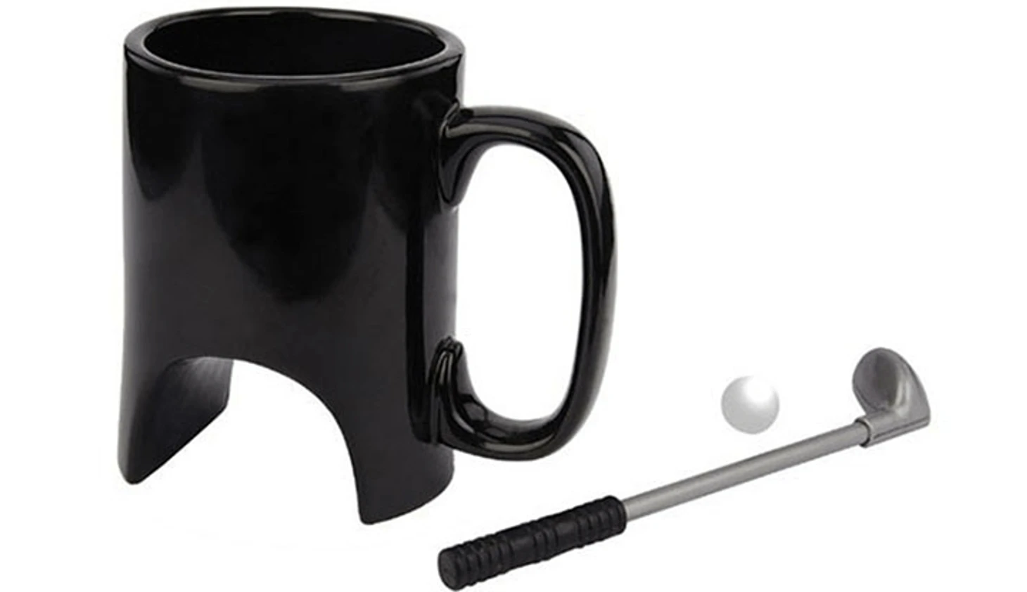 Стильная и минималистичная керамическая чашка, которая поможет потренироваться в мини-гольфе. В комплект также входит клюшка, которая снятием колпачка превращается в ручку.