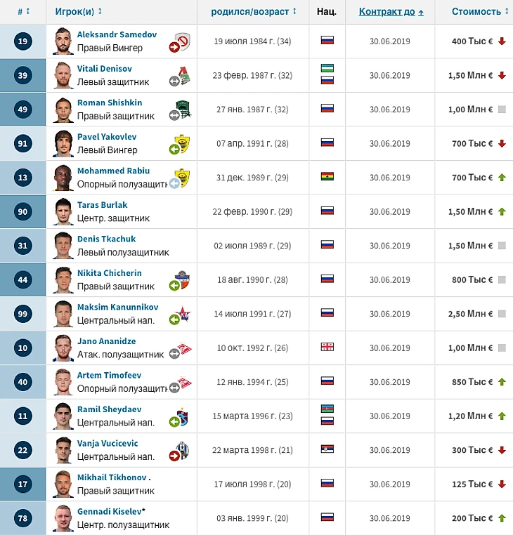 Традиционно для "Крыльев Советов", у дюжины игроков заканчиваются контракты.