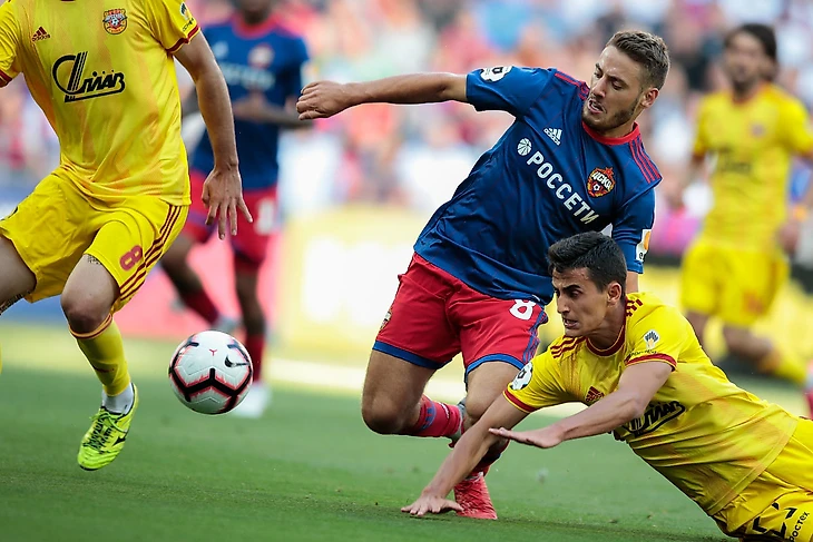 Как и в прошлом сезоне, ЦСКА играет по схеме 3-5-2 с опорником и двумя центральными хавбеками. Было предсказуемо, что Гончаренко не станет менять схему и стиль команды, но была проблема с исполнителями. Особенно это касалось зоны полузащиты. В первых 3 турах в центре поля играли Бийол, Бистрович и Набабкин, задачи которых разрушать, а не созидать. Поэтому у ЦСКА не получалось качественно атаковать в играх с Крыльями, Ростовом и Енисеем. Большинство атак проходило через фланг Фернандеса, который, по сути, стал единственным игроком, отвечающим за остроту атак армейцев. Лишь с приходом Влашича у ЦСКА появился плеймейкер, коим в прошлом сезоне был Головин. По статистике Влашич хорош: по 2 ключевых паса в среднем за 90 минут (3-ий после Хосонова и Бистровича), 33,5 передач с точностью 80,5% в среднем за матч (3-ий показатель), 2,5 ударов (3-ий показатель) и 2 обводки в среднем за игру (1-ый в команде). У Влашича есть один явный недостаток - плохо обороняется без мяча. Об этом подробно описано в посте Дорского про разбор 5-ого тура РПЛ.