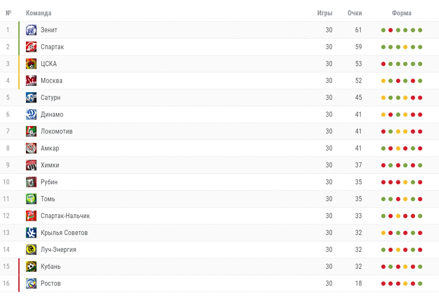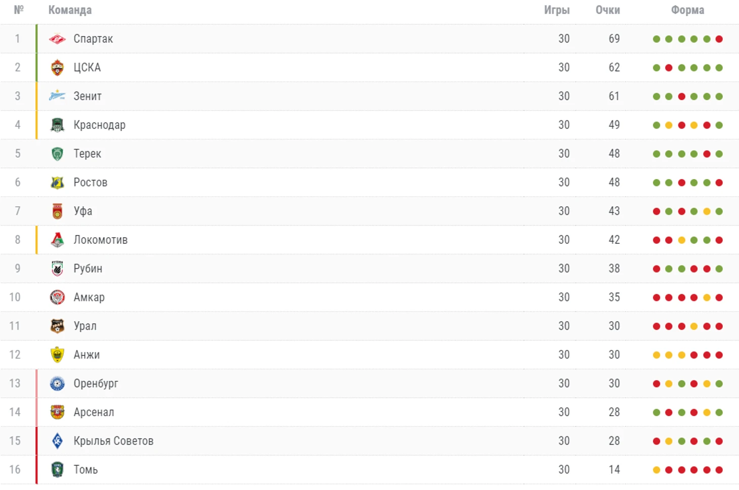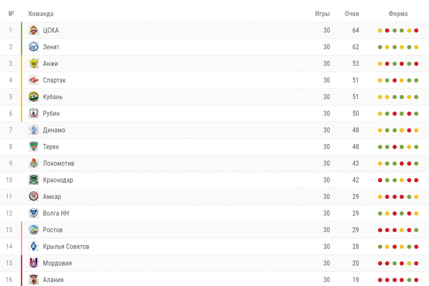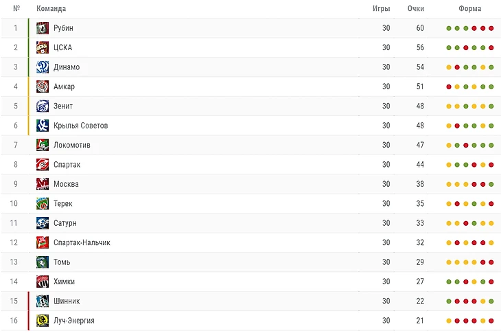 «Амкар»,Пермь 26 игр, 56 очков, 17 побед, 5 ничьих, 4 поражений, 50/15 забитых/пропущенных.
