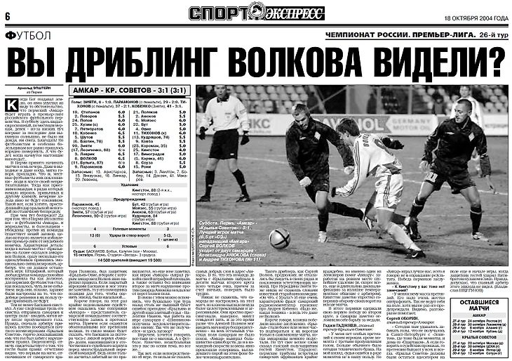 Посмотреть на неё впервые за последнее десятилетие собрался полный стадион — на трибунах старушки-«Звезды» яблоку негде было упасть. Шли в первую очередь на спартаковцев, пожаловавших в столицу Западного Урала в сильнейшем составе, наделавшем много шуму в футбольной Европе. А ушли домой горячими поклонниками амкаровцев. Когда на 84 минуте встречи защитник хозяев Владимир Бенедский направил мяч в нижний угол ворот Александра Филимонова, казалось, чаша стадиона просто расколется от невиданного приступа людского ликования. Ещё несколько суток горожане, позабыв о накрывшем страну дефолте, обсуждали громкую победу своих земляков. А о сенсационном подвиге «молодых футболистов с Урала» уже наутро говорила вся Россия.