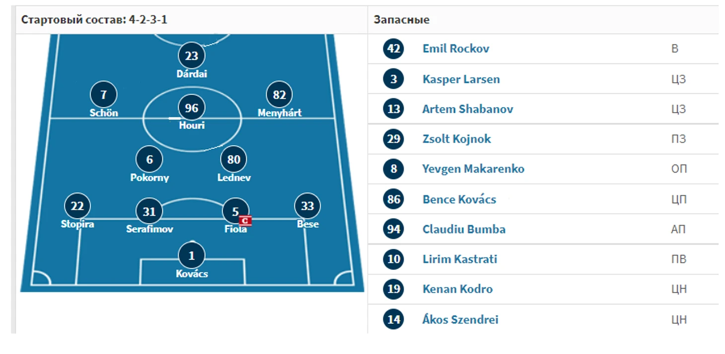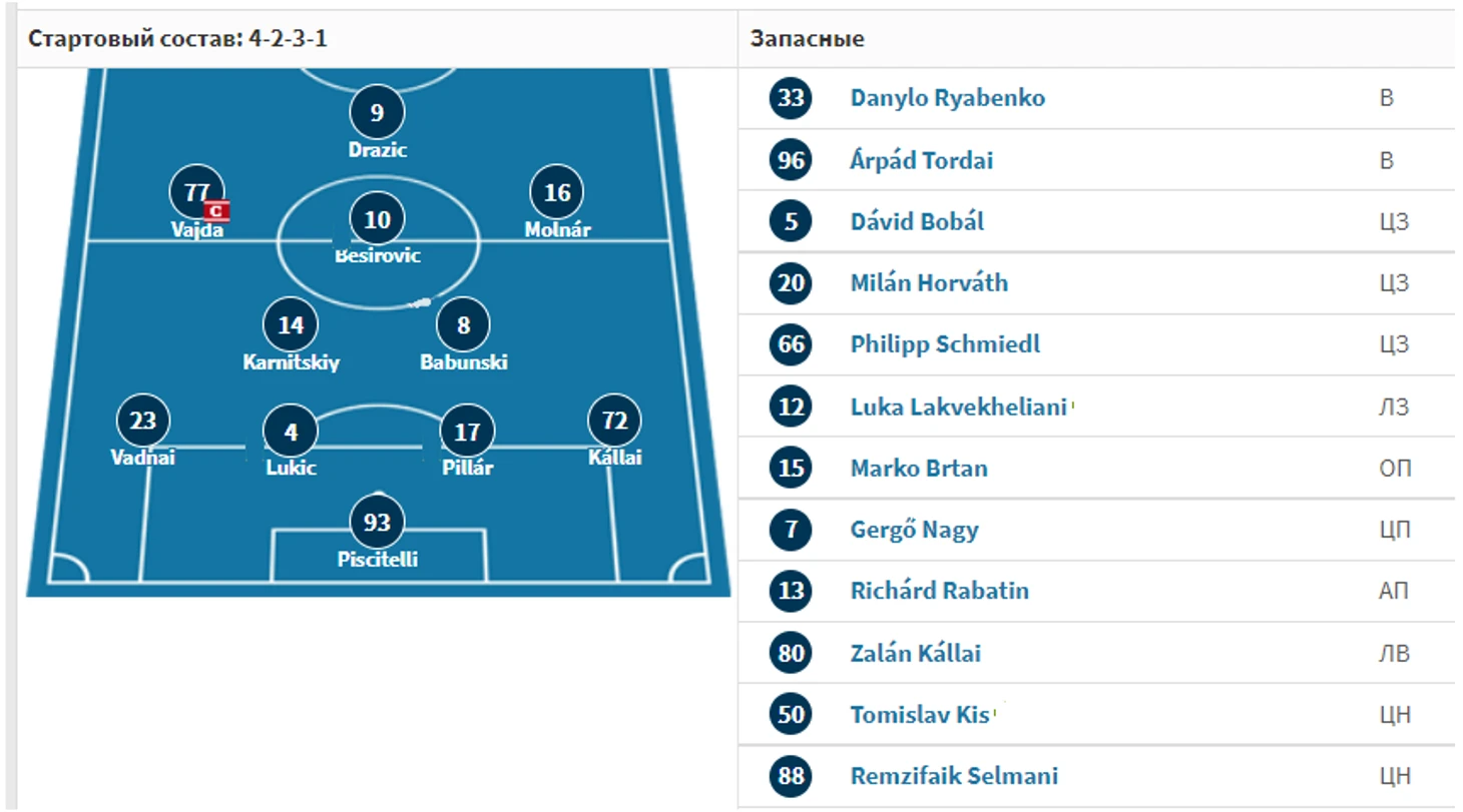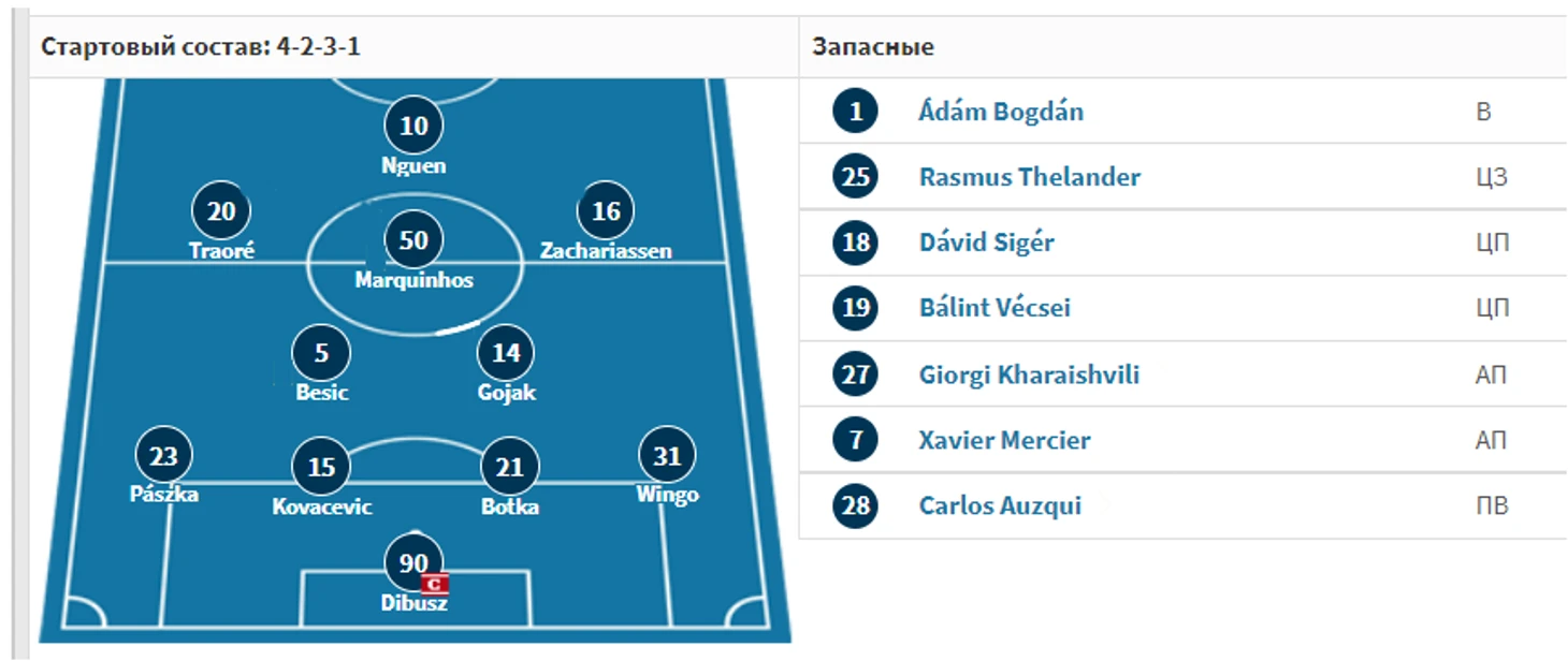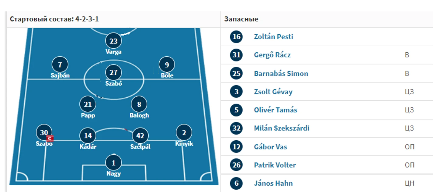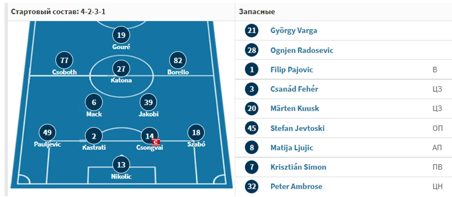 А вот тренер этой команды может быть известен тем, уто болеет за «Зенит» и «Айнтрахт». Сабольч Хусти. Для Венгрии это один так скажем представителей ленд новой эпохи, человек, поигравший во множестве клубов своей венгерской страны, Франции, Германии, Китая и России. Как тренер он только начинает свой путь и 39 лет для этого поприща совсем немного. Всего же благодаря «Фехервару» и «Дебрецену», как у тренера у него накопилось 34 игры с 15 победами, а значит и их 44%.