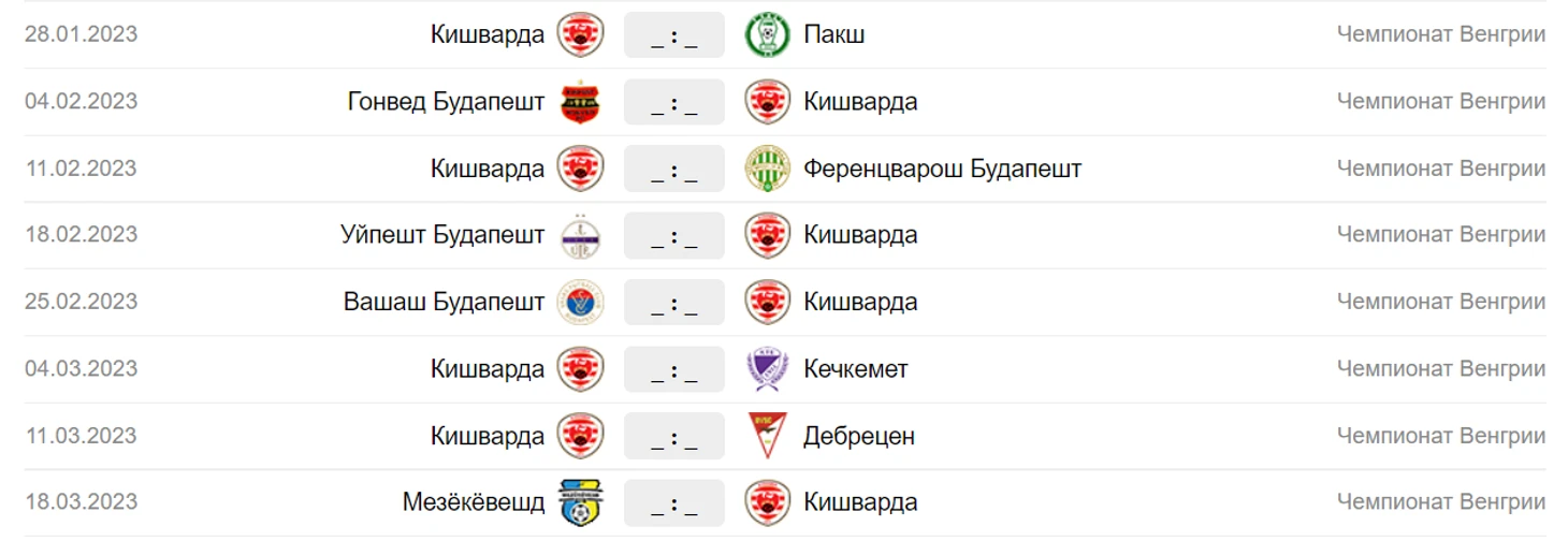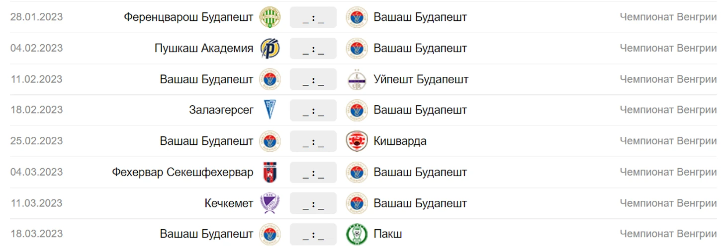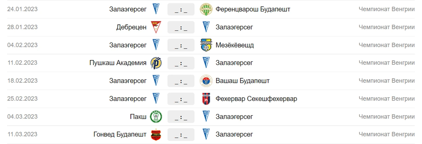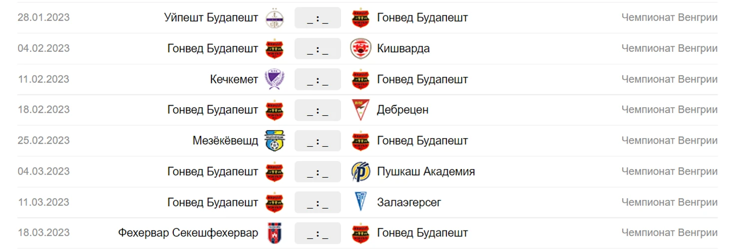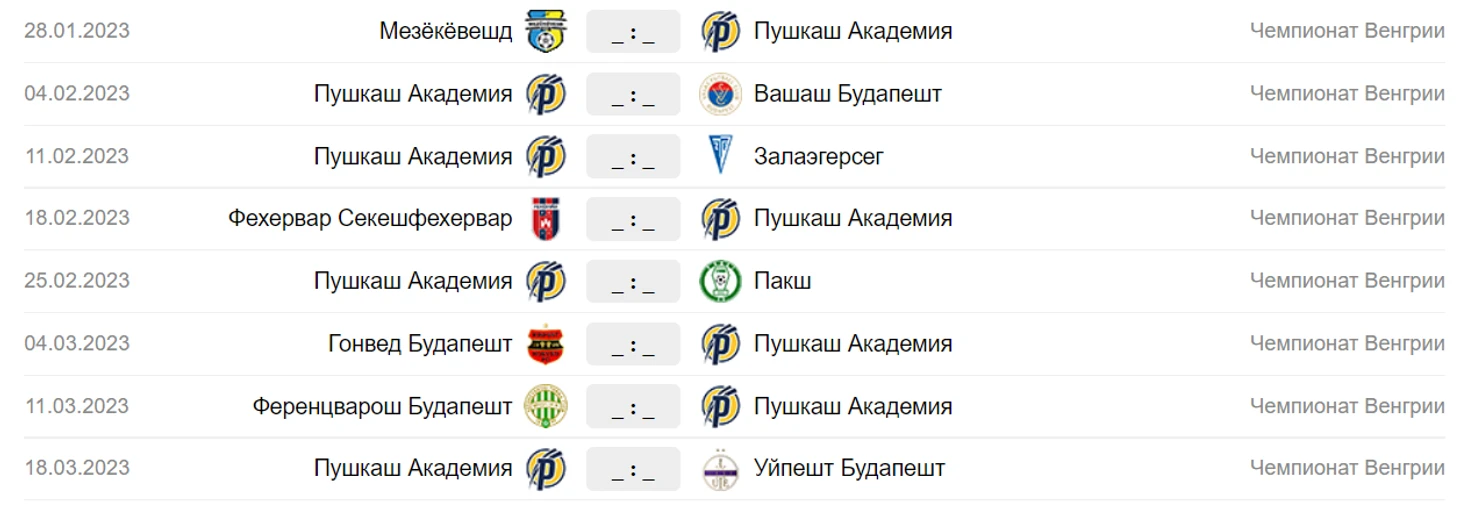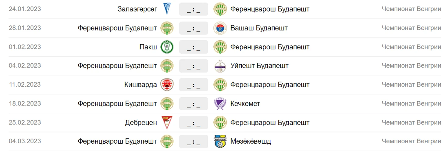 В январе будет игра против «Ференцвароша», в феврале против «Пушкаш Академии», «Уйпешта», «Залаэгерсега» и «Кишварды», в марте «Фехервар», «Кечкемет» и «Пакш».