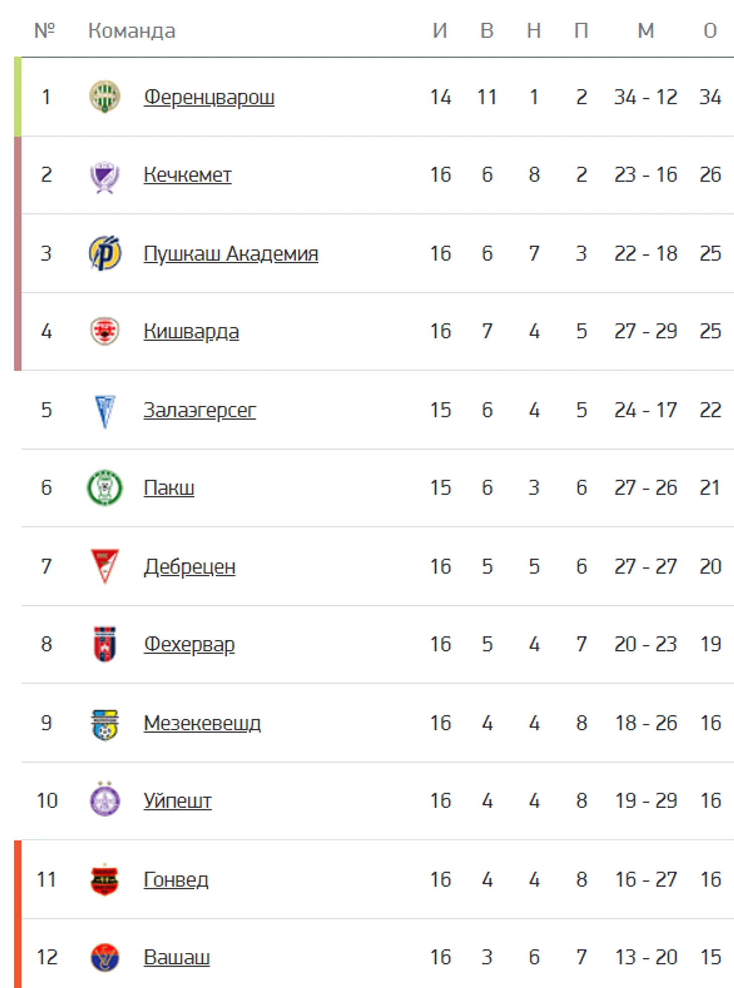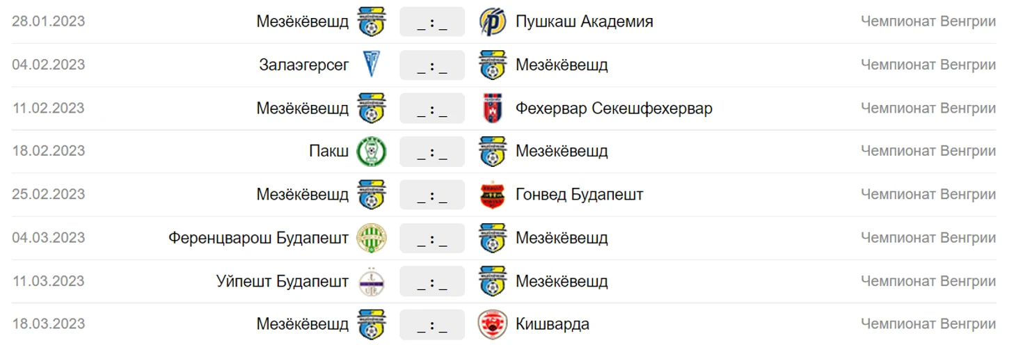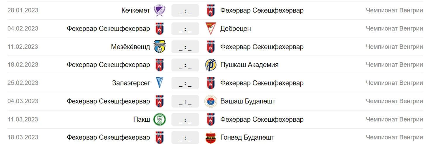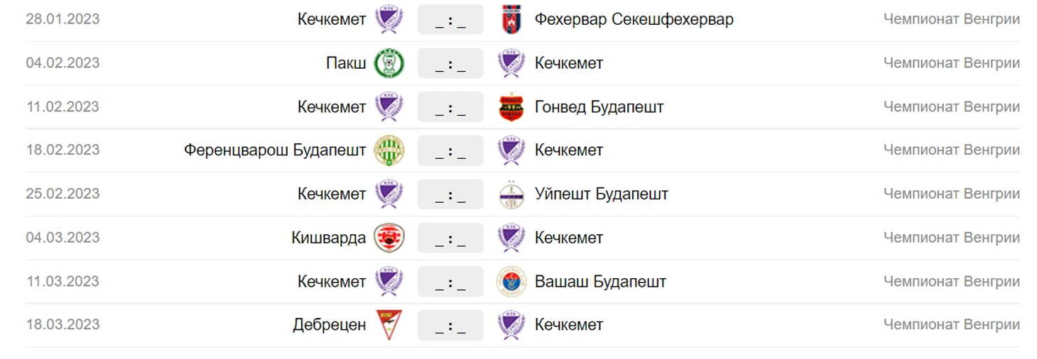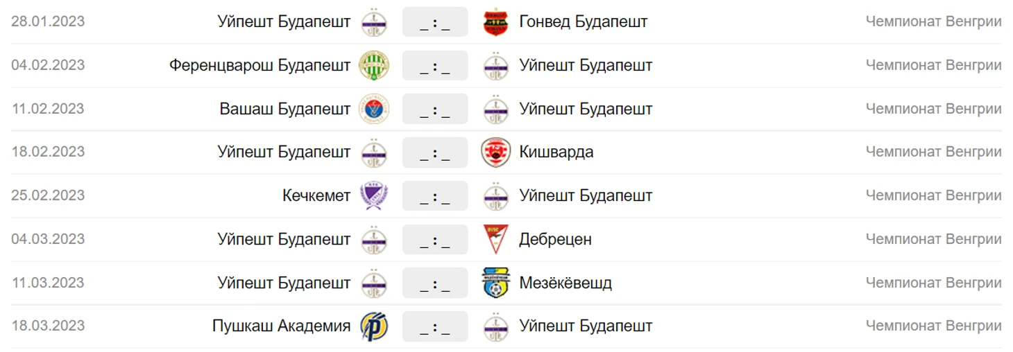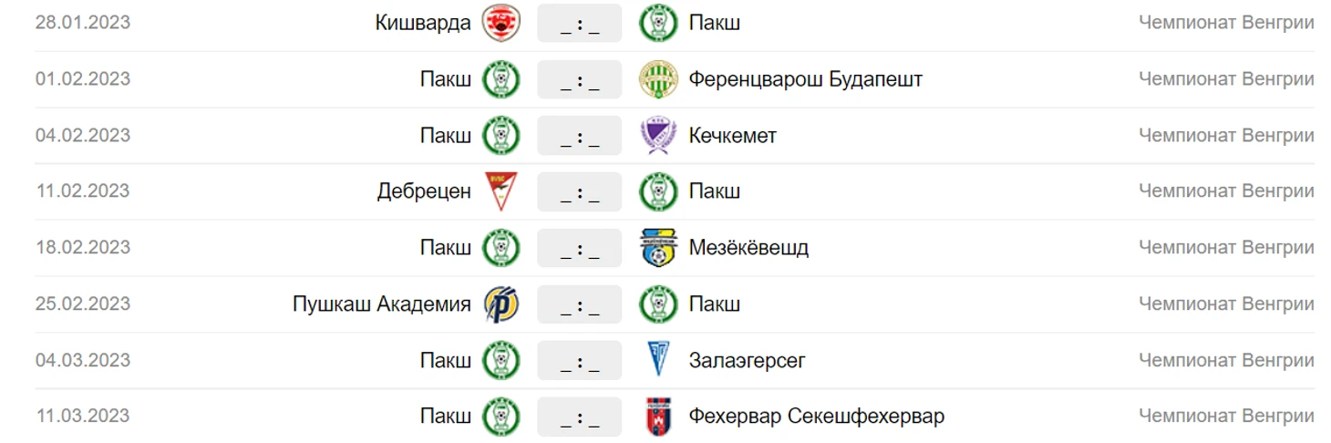 В январе будет игра против «Ференцвароша», в феврале против «Пушкаш Академии», «Уйпешта», «Залаэгерсега» и «Кишварды», в марте «Фехервар», «Кечкемет» и «Пакш».