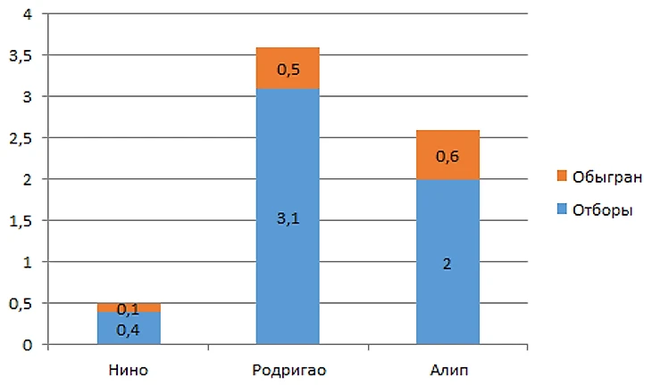 Отмечу что в РПЛ отборов среди защитников на 24% больше, чем в Бразилии, но и без этого разница огромная.