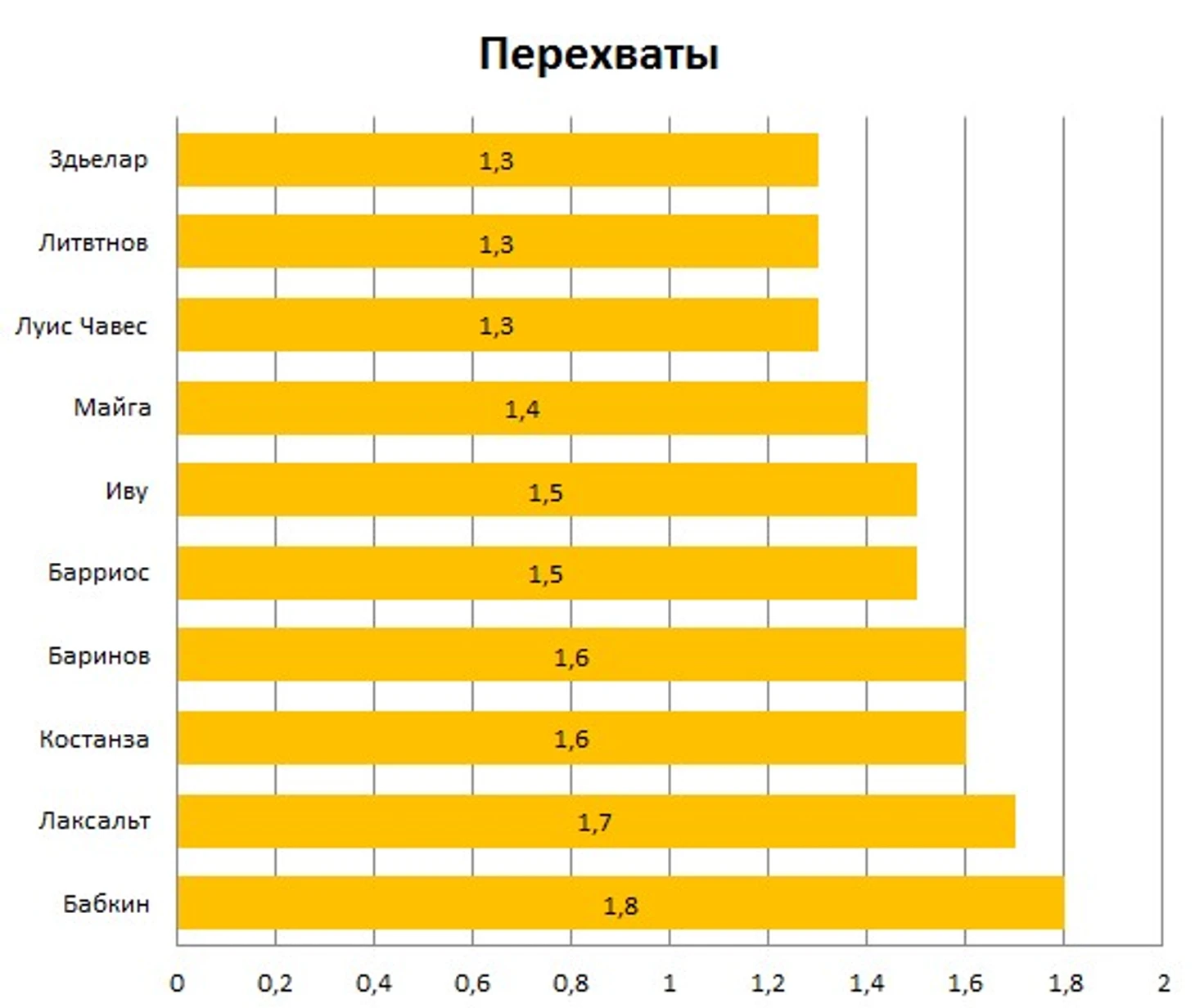 Топ центральных полузащитников РПЛ по отборам и перехватам