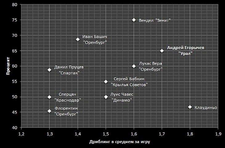 График показателей 10 лучших центральных полузащитников нашего Чемпионата