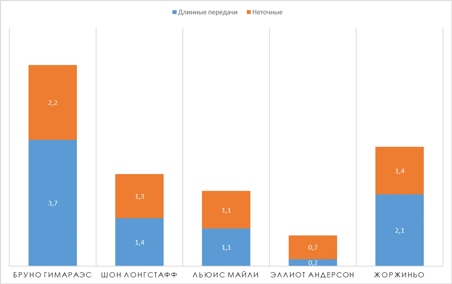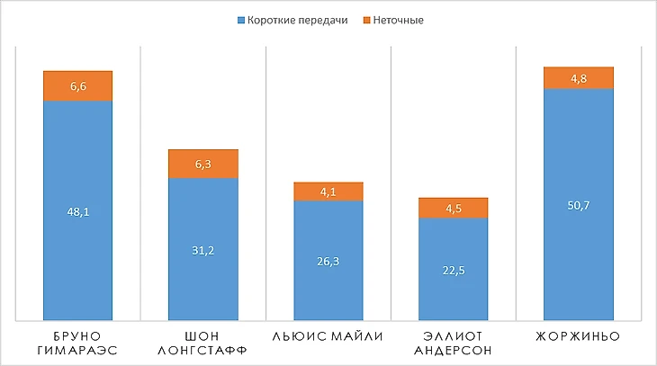 3,5 длинных передачи за игру. ТОП - 5 среди полузащитников.