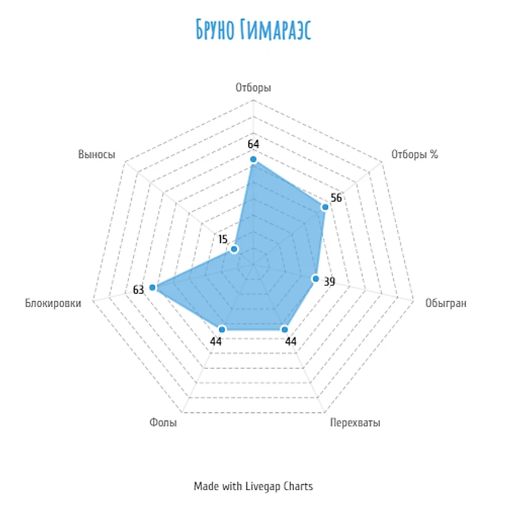Больше всех в команде взаимодействовал с мячом.