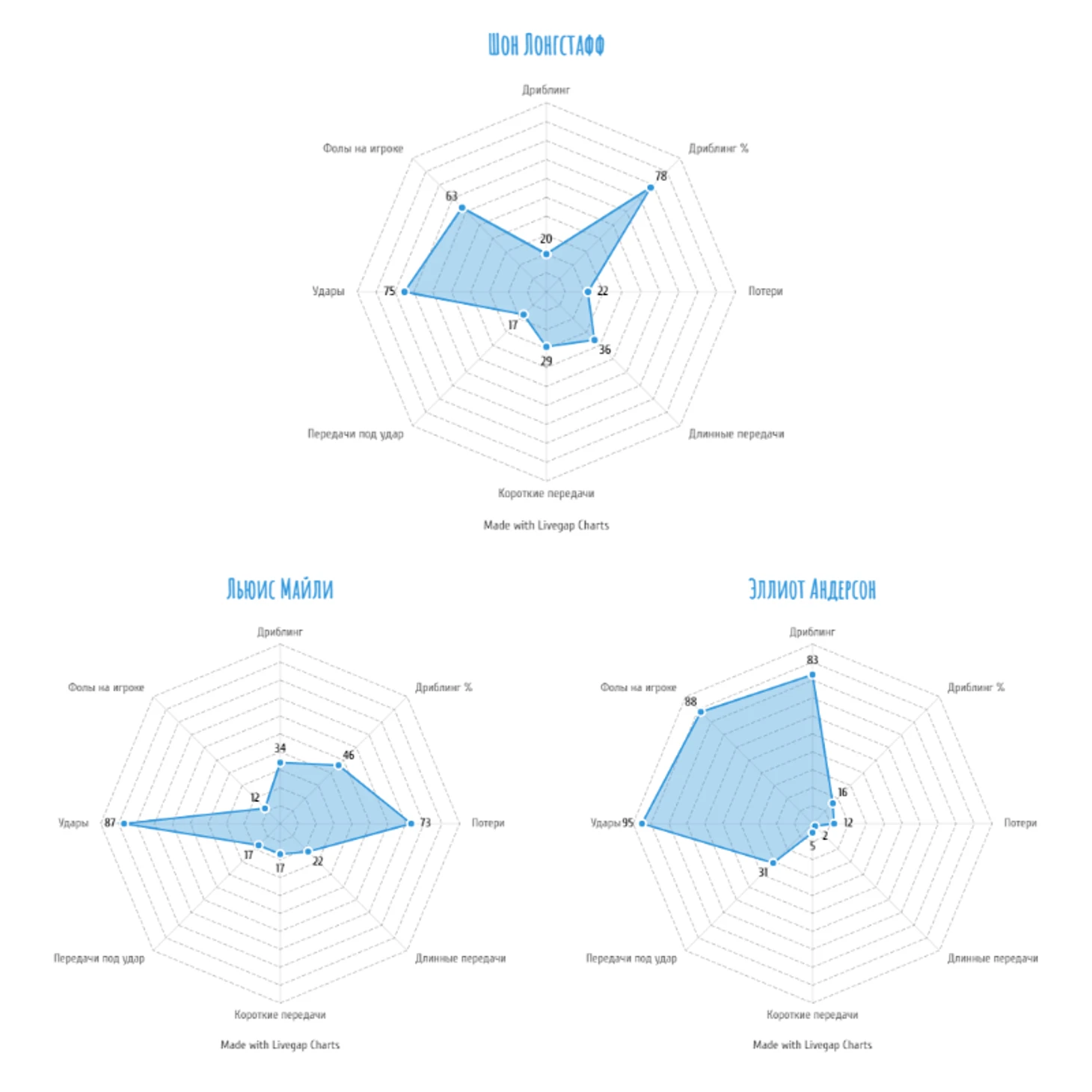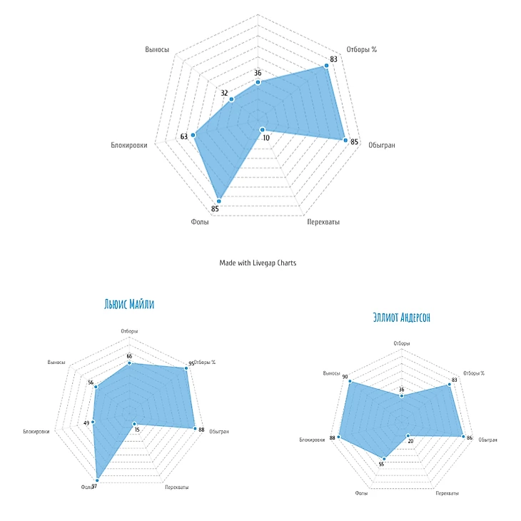 В этой статье хотел бы поделиться своим видением о том, что может дать игрок для команды. Показатели игроков буду рассматривать посредством диаграмм, где процентиль 80 будет означать, что игрок лучше 80% игроков на своей позиции. Выборка состоит из 40 лучших по оценкам центральных полузащитников Англии
