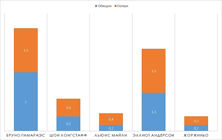 По многим показателям видно, игрок меньше задействован в обороне нежели партнеры по команде.