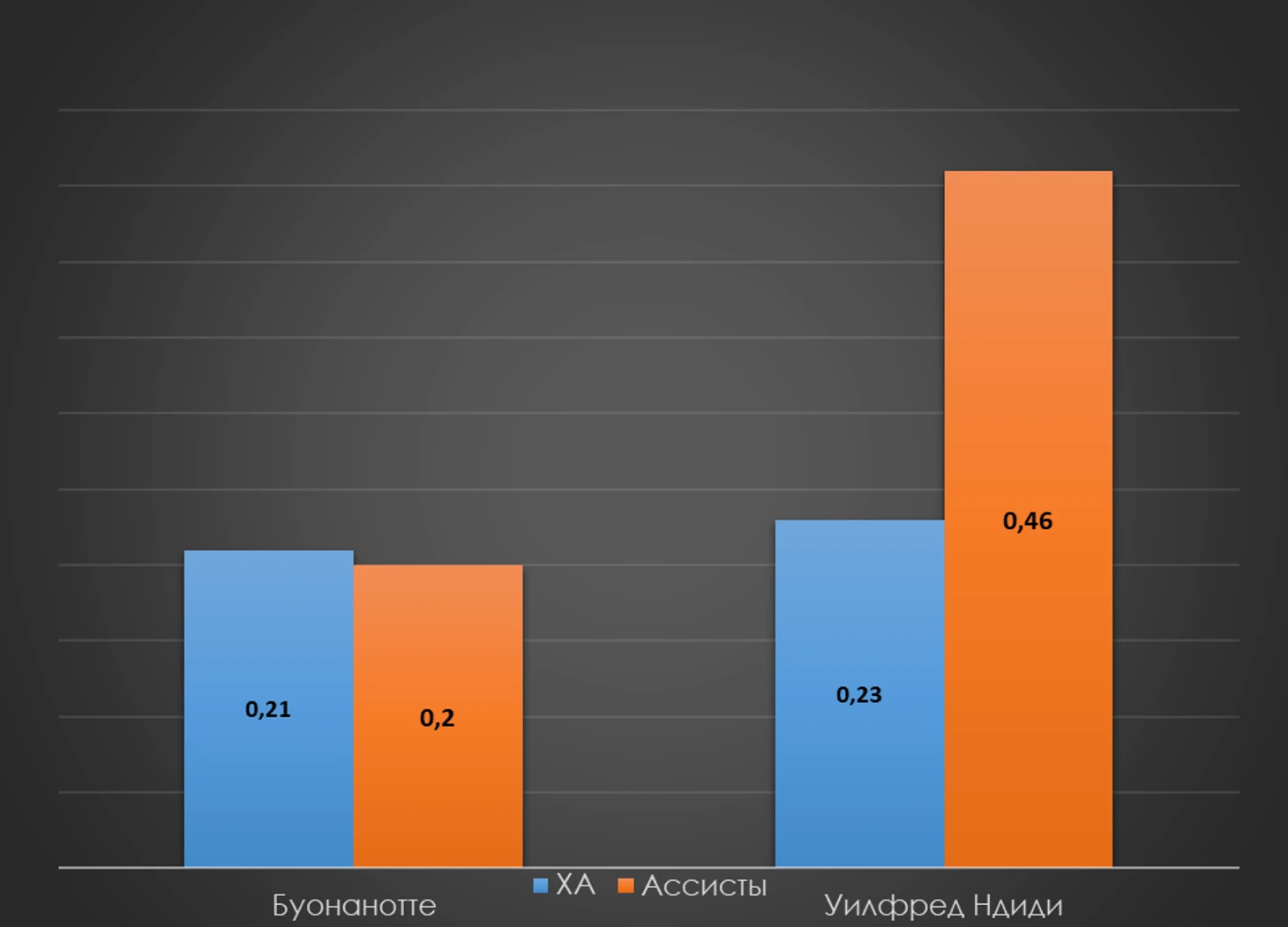 После 9 туров «Лестер» занимает 14 строчку. Команда играть по схеме 4-2-3-1, где игрок выходил на 2-ух позициях, как в центре, так и правее.