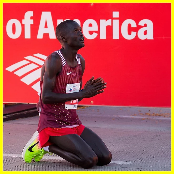 «Для меня гонка сложилась идеально. Буквально за пять метров до финишной черты небеса разверзлись, и пошёл дождь. Я завершил гонку с результатом 2:06:54 (это время является рекордным для первенств планеты) и пустился в пляс. Нет, не под музыку. Музыка была в моей голове. Я был счастлив».