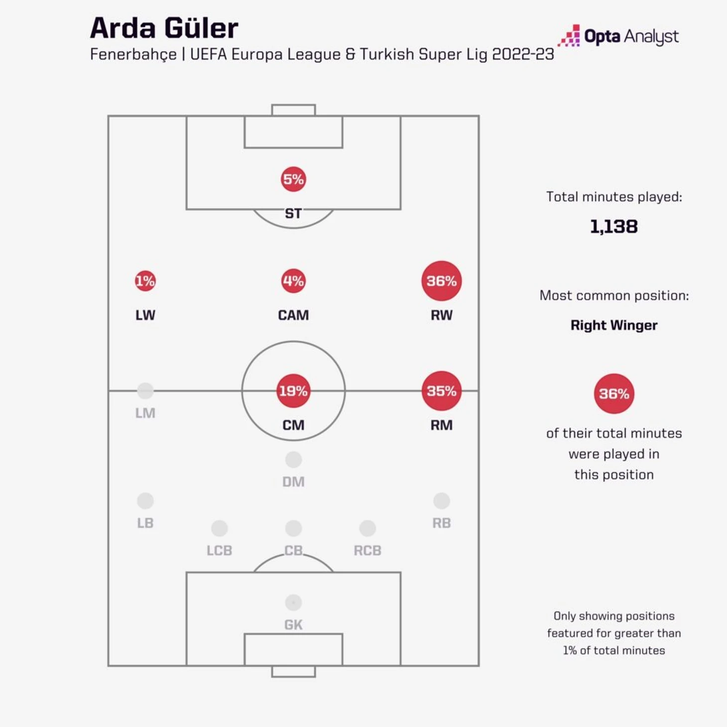 Когда ему дали шанс продемонстрировать свои очевидные таланты, Гюлер был задействован справа в предпочтительной для Хесуса схеме 4-1-3-2, несмотря на то, что он был скорее классической десяткой. 71% своего игрового времени он провел на позиции правого полузащитника / вингера, в то время как его время в центре полузащиты даже превышало время, проведенное на позиции атакующего полузащитника.