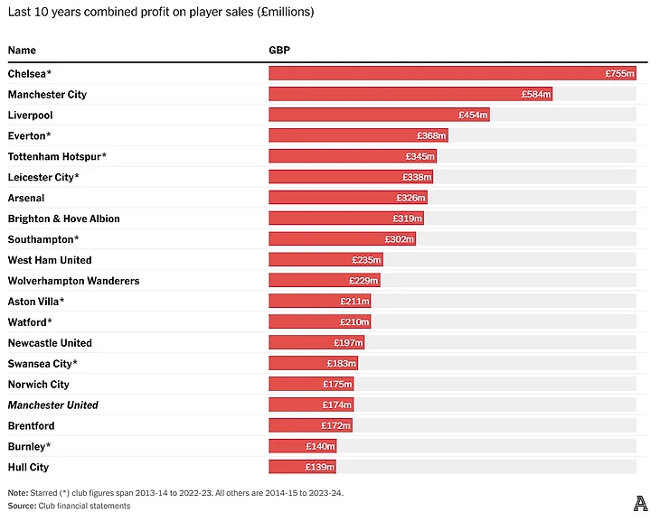 И даже после этого на конец декабря Манчестер Юнайтед продолжал задолжать другим клубам по трансферным платежам чистую сумму в £300,1 млн, из которых £167,9 млн подлежат выплате до конца 2025 года. За исключением Челси (который не раскрывает конкретную сумму кредиторской задолженности по трансферам, но значительные обязательства клуба указывают на крупные суммы, причитающиеся другим клубам), ни один другой клуб Премьер-лиги не имеет такой большой задолженности по трансферам.