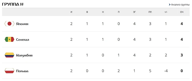 После 2 туров Чемпионата группа H– самая сложная для предсказания команд-участниц стадии плей-офф, а сборная Сенегала – уже точно одно из открытий Мундиаля.