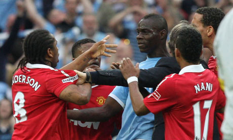 Даниэль Тэйлор рассказывает о восстановленных отношениях между Марио Балотелли и Рио Фердинандом: «Марио Балотелли настаивает на том, что в воскресенье на поле «Олд Траффорд» не будет никакого сведения счетов между ним и Рио Фердинандом, но предупреждает соперников, что планирует продолжить свою голевую серию в предстоящем матче. «Я не имею ничего против него», - говорит Балотелли. Он отличный игрок. Я даже не разговаривал с ним на [«Уэмбли»]. Я просто праздновал, но не против них [болельщиков «Юнайтед»]. Я просто показал ему футболку «Сити», и это, очевидно, разозлило его».
