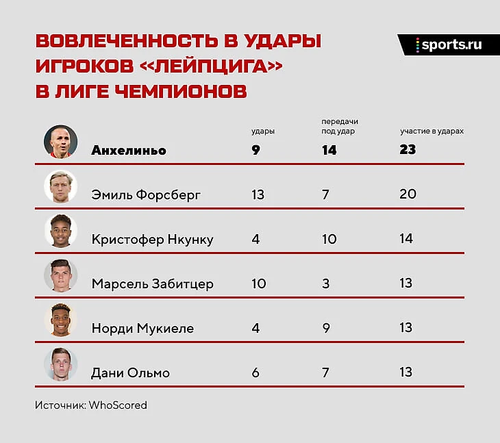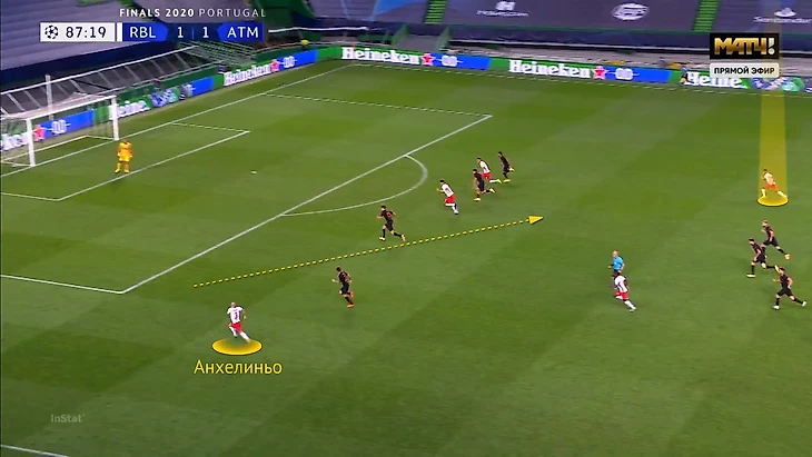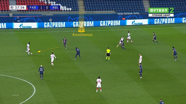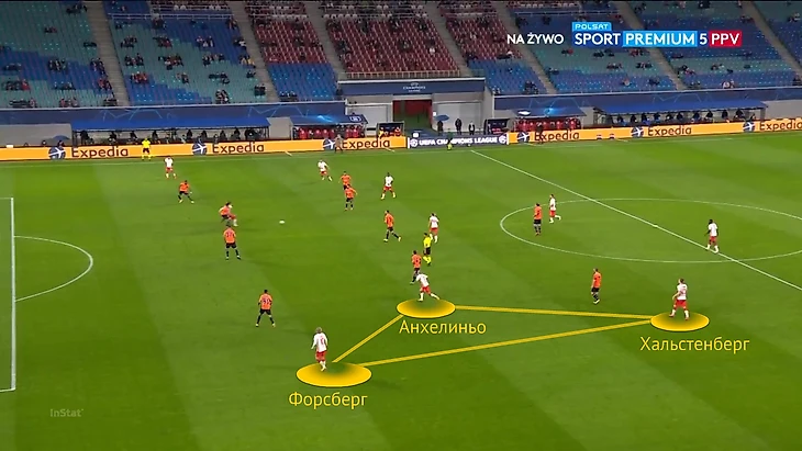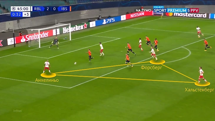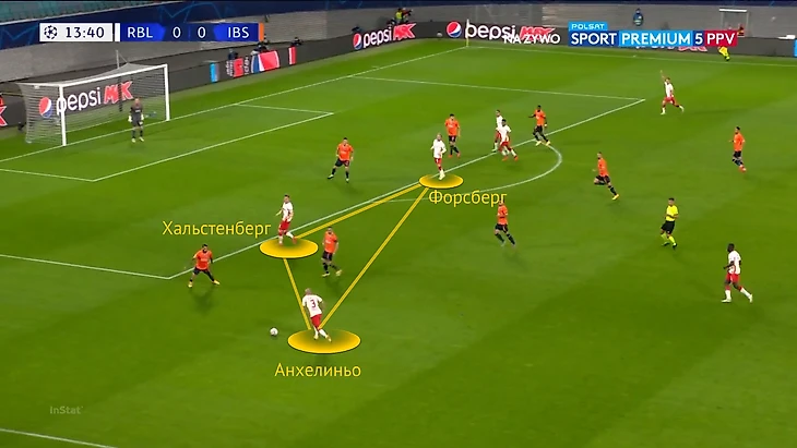 Пример вариативности Анхелиньо – игра Лиги чемпионов с «Истанбулом». Там «Лейпциг» использовал схему 4-1-4-1, а испанец стартовал левым полузащитником. Рядом с Анхелиньо располагались Эмиль Форсберг (восьмерка) и Марсель Хальстенберг (левый защитник). Треугольник регулярно менялся, а Анхелиньо побывал во всех ролях.