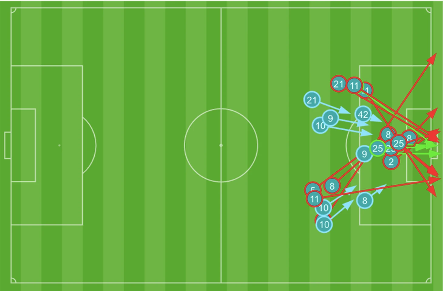Показательны карты дальних ударов и навесов «Баварии» – по сути оба элемента хозяева исполняли из одной зоны:
