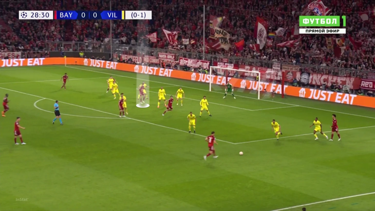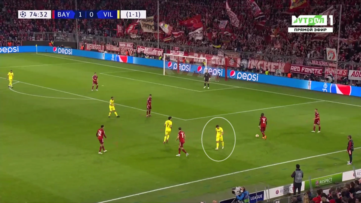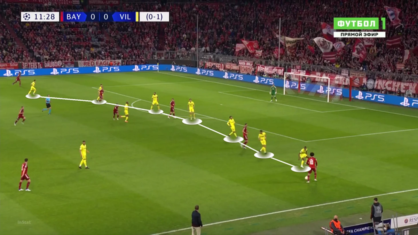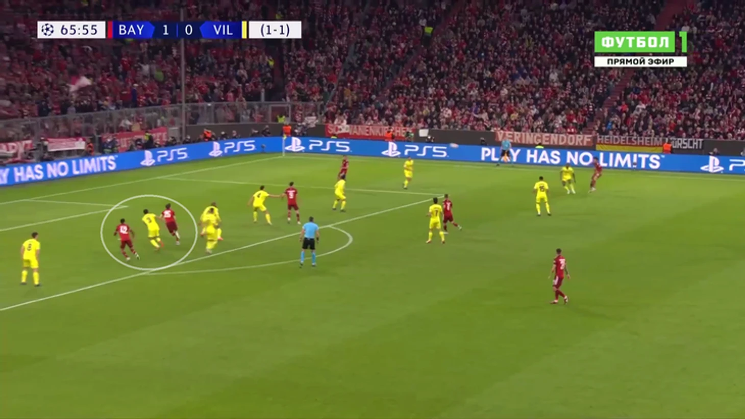 Побочным эффектом от этого стала свобода для «Баварии» в опорной «Вильярреала». Ей гости не воспользовались – удары оттуда либо блокировались, либо дыру прикрывали нападающие (как правило, Морено). Важно, что благодаря прессингу и смелости с мячом «Вильярреал» не всегда находился в этом режиме – форварды сохраняли силы для оборонительной работы.
